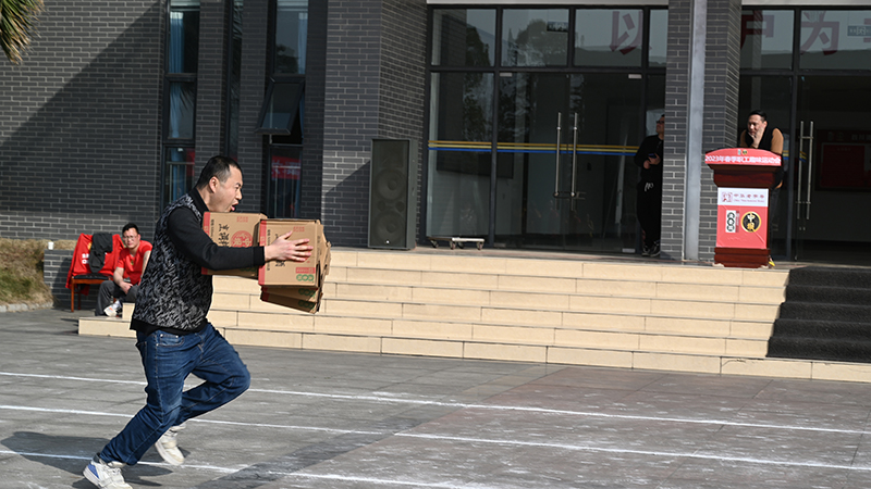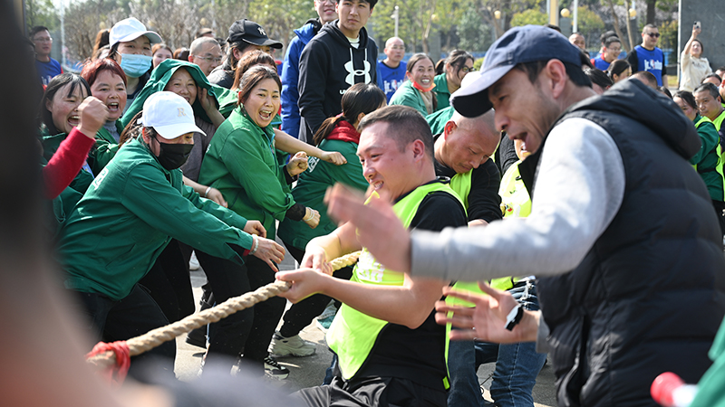 运动会设置集体项目与个人项目两大类,首先进行的是提高团队凝聚力的“齐心协力、拔河、齐心协力、滚雪球、代代相传”的团体游戏,“共同进退”的理念一旦提出,大家的配合度与默契度立马提升。随后是个人赛环节,男子/女子一分钟俯卧撑、跳绳、踢毽子、立定跳远、永争一流、叠纸箱技能赛等项目时刻上演着速度与激情。