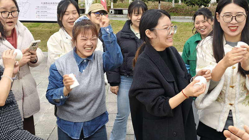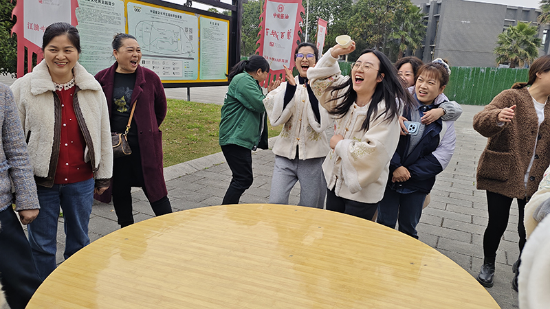 参观环节之后,进入了备受期待的团队建设游戏环节。在工会工作人员的精心组织下,三项趣味横生的游戏接连展开。