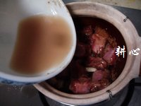 倒入适量的芡汁(利用腌制肋排碗里的酱汁,加点清水就变成芡汁啦)。