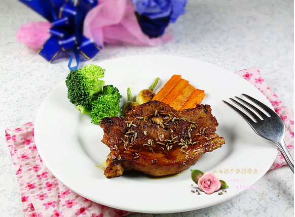 辅料:油适量、葡萄酒适量、大蒜适量、烤肉酱适量、孜然粒适量、迷迭香碎适量