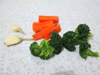 准备好蒜,胡萝卜切成小条,西兰花洗净掰成小朵。