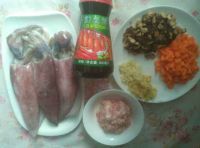 主料:鱿鱼(3只)糯米(适量)香菇(5朵)肉末(适量)胡萝卜(适量)