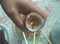 7.蒸好后的鱿鱼(我想哭::>_<::这鱿鱼质量太差,缩水太厉害,把内馅挤出一半来了,所以为了保险,大家一定在塞内馅时不可贪多)