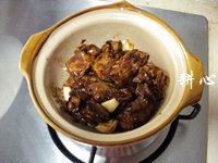 揭盖,倒入芡汁(芡汁就是利用腌制肋排碗里的酱汁,加点清水即可变成芡汁啦)。